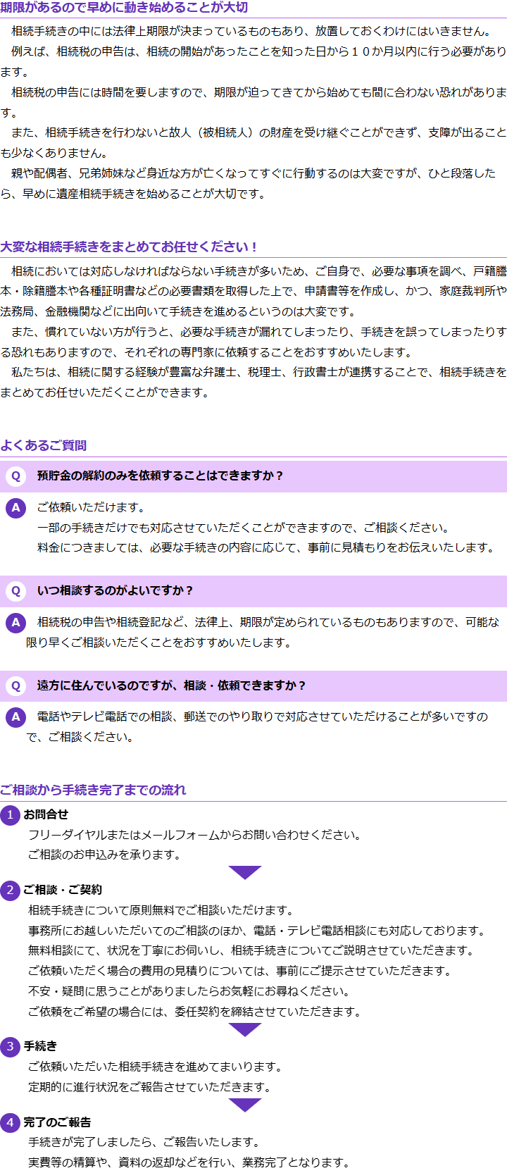 そのため、相続手続きについては、できるだけお早めに専門家にご相談いただくことをおすすめします。